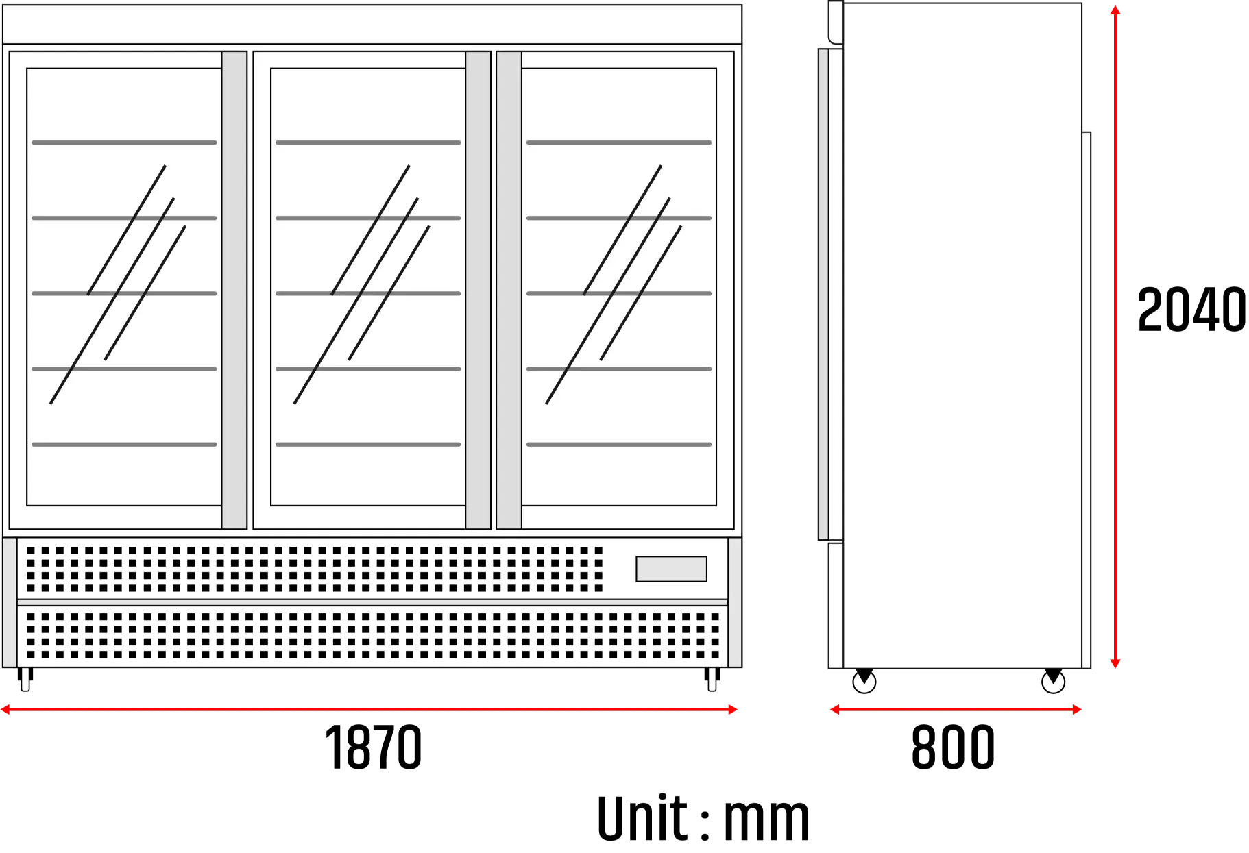 SWRS-S8001UN1455+3 ~ +8°C1870 × 800 × 2040R290220V/110V 50/60Hz15 Adjustable Shelves