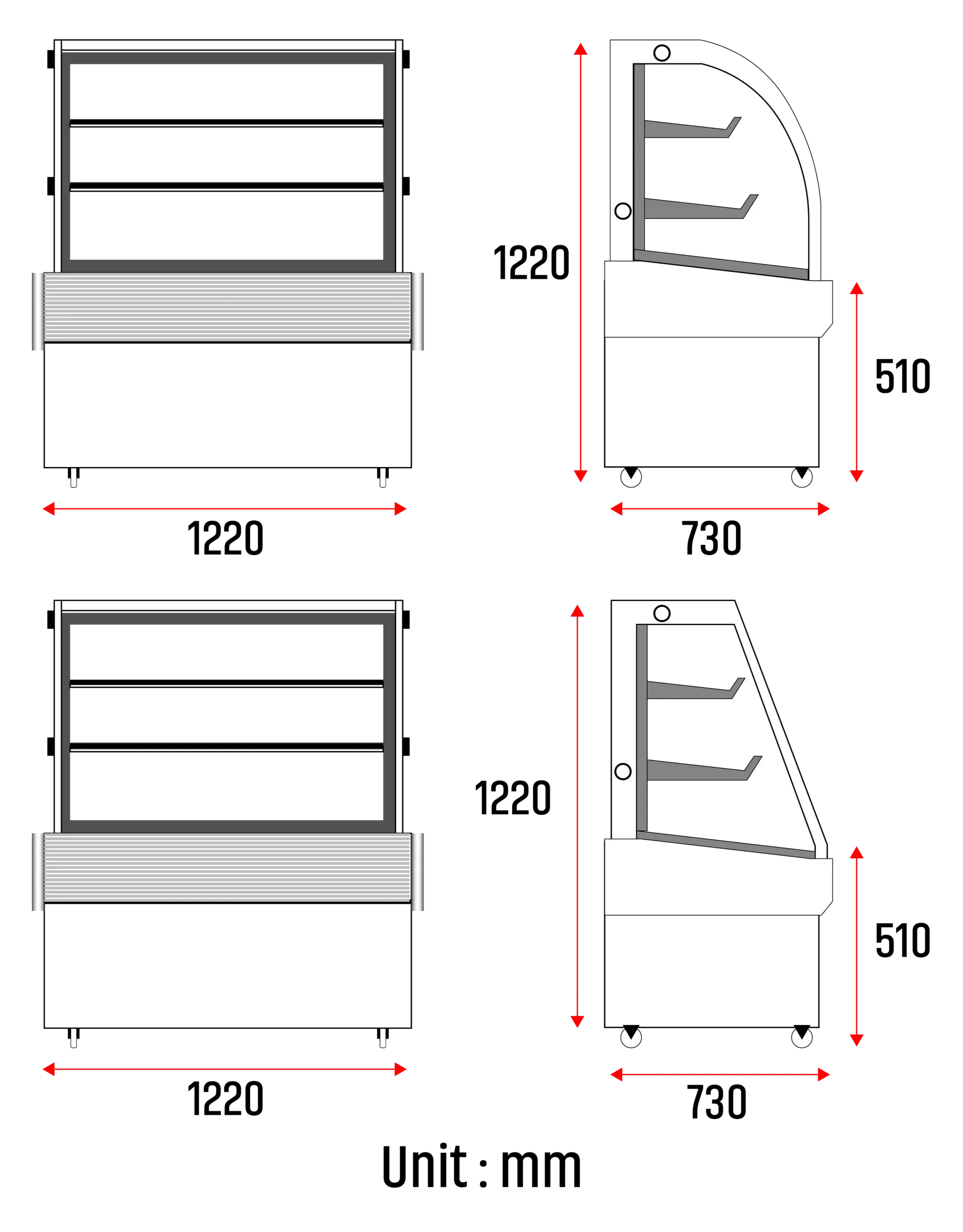 The FrostView Classic refrigerated cake display combines a refined cabinet design with dependable performance. Available with curved or flat glass and optional marble base finishes, it delivers a luxurious presentation for cakes, pastries, and desserts while maintaining precise chilled conditions throughout the day.