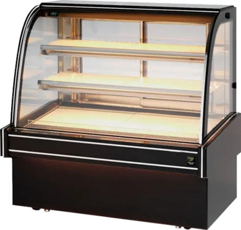 Timeless Curved-Glass Pastry Display with Optional Marble Base & LED Illumination