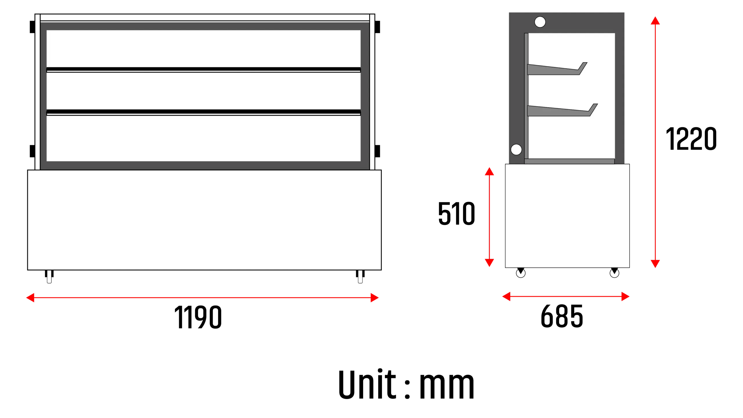 SWRS-C9060SQ+3°C ~ +8°C1190 × 685 × 1220R290220/110V 50/60Hz2 Glass display shelves